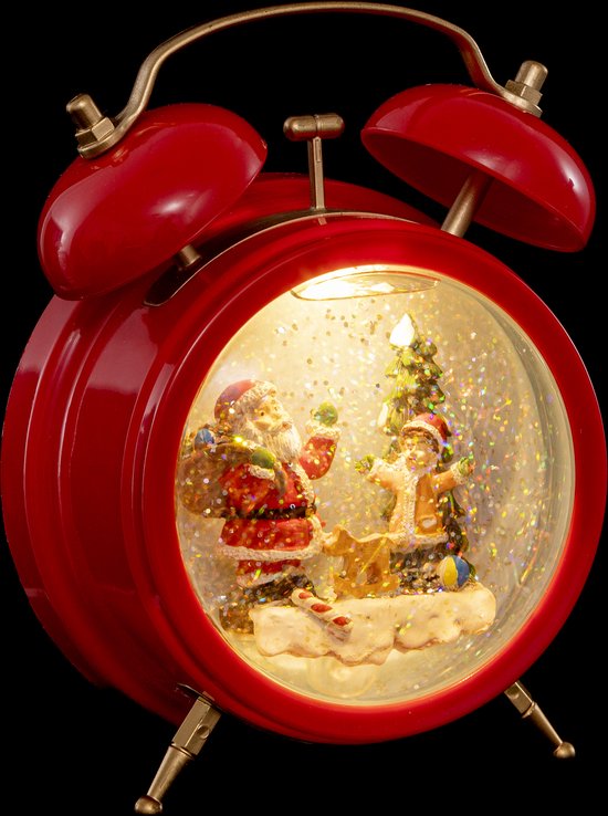 Sneeuwbol in de vorm van een wekker met licht - Waterklok - H20 CM - 2 LED - Kerstdecoratie