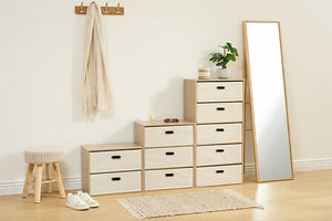 Dit opbergkastje met drie ruime lades is ideaal voor het netjes opbergen van speelgoed, knutselspullen of verzorgingsproducten. De combinatie van houtlook en stoffen lades geeft een warme, moderne touch aan elke kamer!