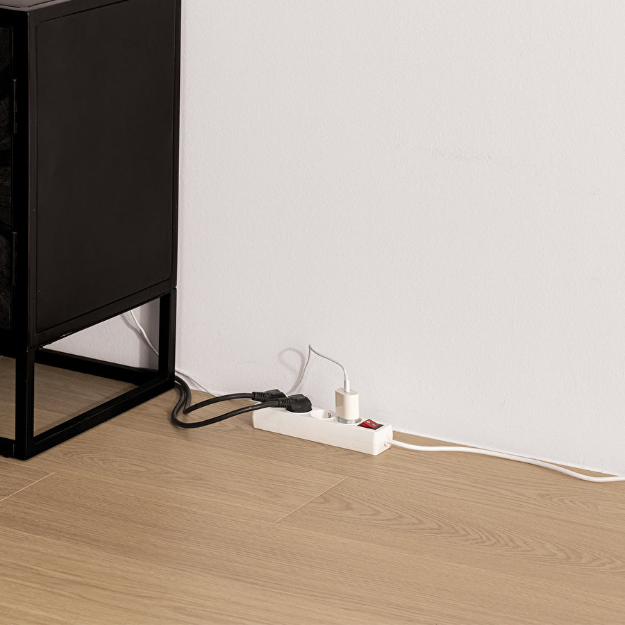 Kabelafdekdoos die een oplossing biedt voor het ordenen en verbergen van kabels in stekkerdozen. Compatibel met 6-polige stekkerdoos: lengte 32 cm 2 zijopeningen voor het doorvoeren van kabels