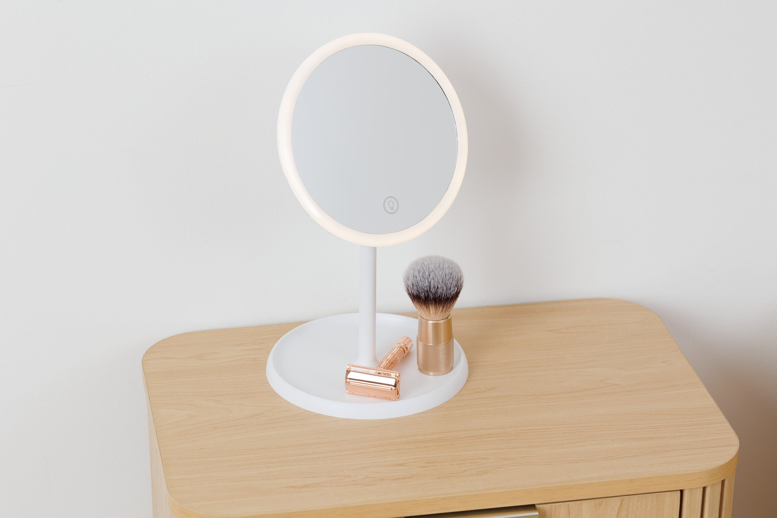 Dankzij de geïntegreerde touch-knop regel je eenvoudig het licht voor perfect zicht, of je nu je make-up aanbrengt of je huid verzorgt. Het strakke, moderne design met praktische voet maakt hem een stijlvolle toevoeging aan elke kaptafel of badkamer.