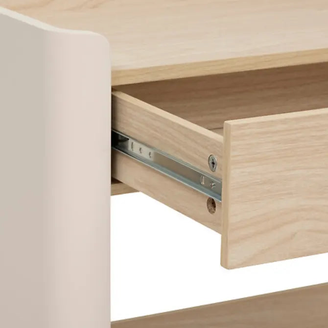 Deze consoletafel met opbergruimte combineert een modern design met praktische functionaliteit. De zachte kleuren en warme houtlook geven de tafel een rustige en stijlvolle uitstraling. Dankzij het handige opbergvak en de extra plank heb je ruimte voor decoratie, sleutels of andere accessoires. Perfect voor in de hal, woonkamer of slaapkamer. ✨