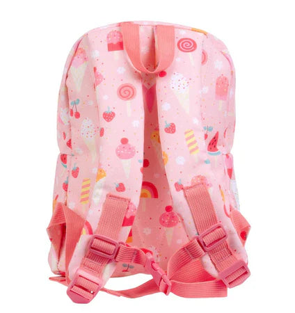 Kleine rugzak met ijsjes. Ruim hoofdcompartiment met extra rits vak voorop. De rugzak is voorzien van gewatteerde schouderbanden en rugpaneel. De borstriem zorgt dat de rugzak niet snel van de schouders zakt.