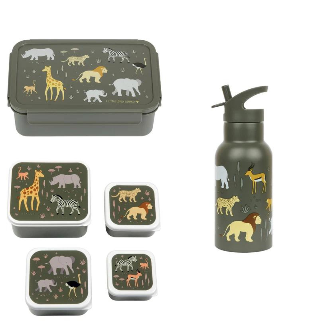 BEAU by Bo A Little Lovely Company Back to school set - Drinkfles RVS/4 Snackdozen/Bentobox - Savanne