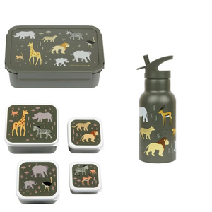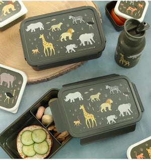 Ruime bentobox met savanne print. De luchtdichte click & close deksel en uitneembaar bento bakje met twee vakken zorgt voor een perfect georganiseerde lunch. Een ideale trommel voor een verse en gevarieerde lunch op school of onderweg.