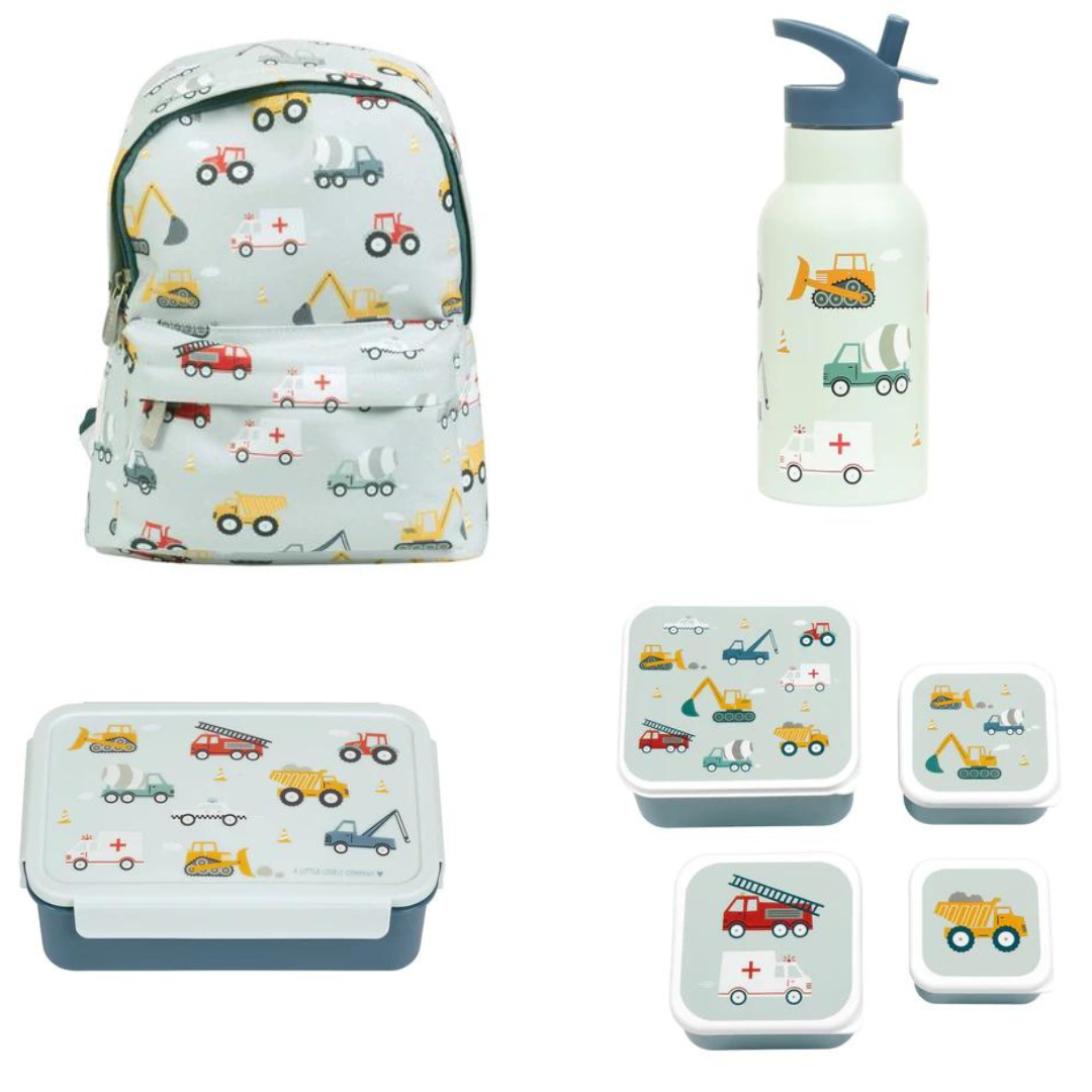 BEAU by Bo A Little Lovely Company Back to school set - Rugzak/Drinkfles RVS/4 Snackdozen/Bentobox - Voertuigen