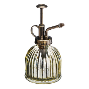 Dieses Vintage -Sprühgerät aus gestreiften Glas hat eine harmonische Größe von 8 x 16 cm und ist mit einem Metallmechanismus ausgestattet. Es ist praktisch, dass Sie sich um Ihre Pflanzen kümmern und auf einem Möbel- oder Regalstück großartig aussieht, wo es Ihrem Innenraum eine Vintage -Note verleiht.