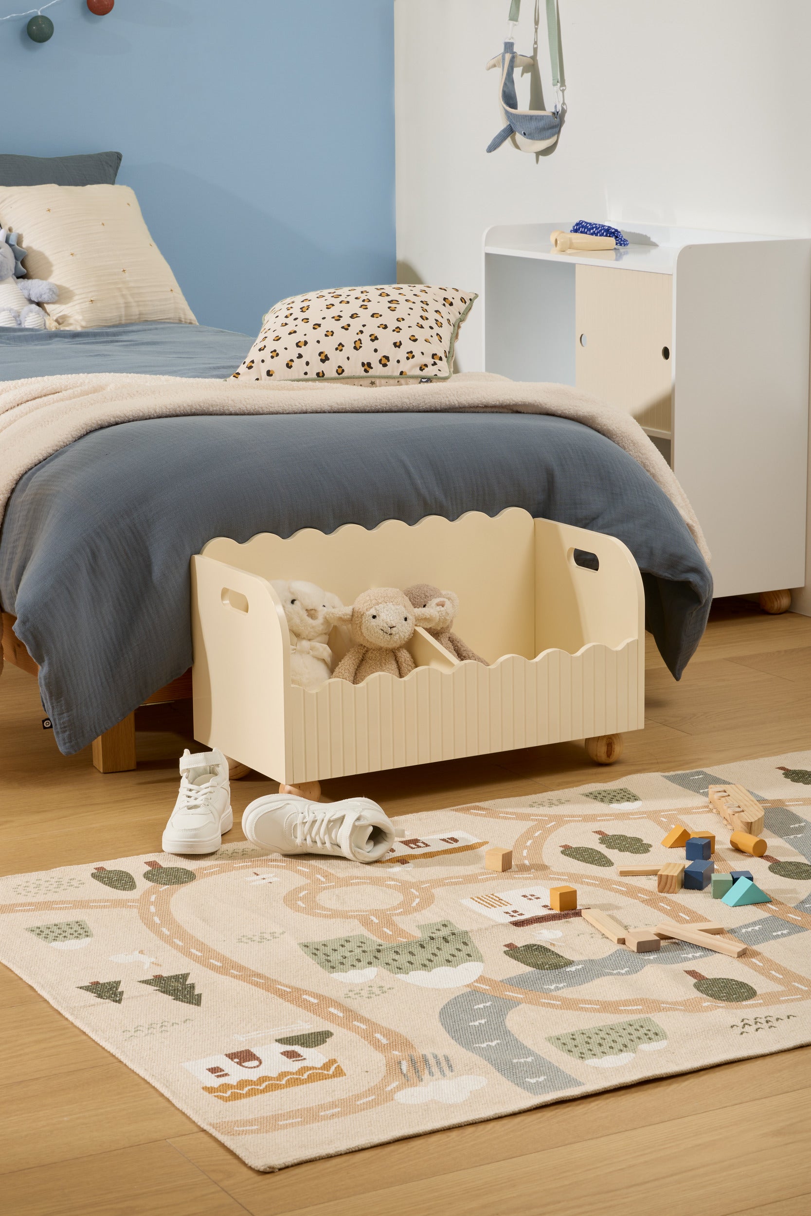 Deze speelse opbergbox is perfect voor speelgoed, boekjes of knuffels. Dankzij het vrolijke design en de handige handgrepen is hij makkelijk te verplaatsen en een mooie aanvulling in elke kinderkamer.
