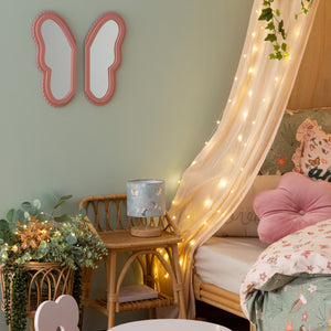 Creëer een romantische sfeer in de kamer van je kind met de 2 Vlinder “Anna” spiegels van Atmosphera for Kids! Deze twee speelse en charmante spiegels in de vorm van een vlinder zitten in houten frames met gebeeldhouwde randen. Ze hebben een matte afwerking in zachte tinten en zijn ontworpen om naast elkaar te hangen. Plaats deze spiegels op een kindvriendelijke hoogte en voeg een kleine touwlamp toe om de look compleet te maken.