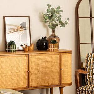 Onze mauve gestreepte keramische potplant past bij onze Edric vaas.