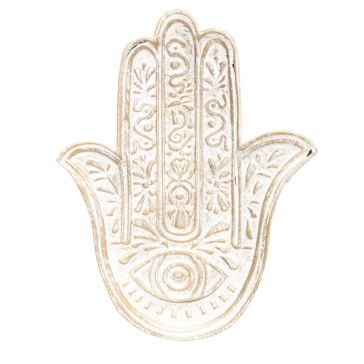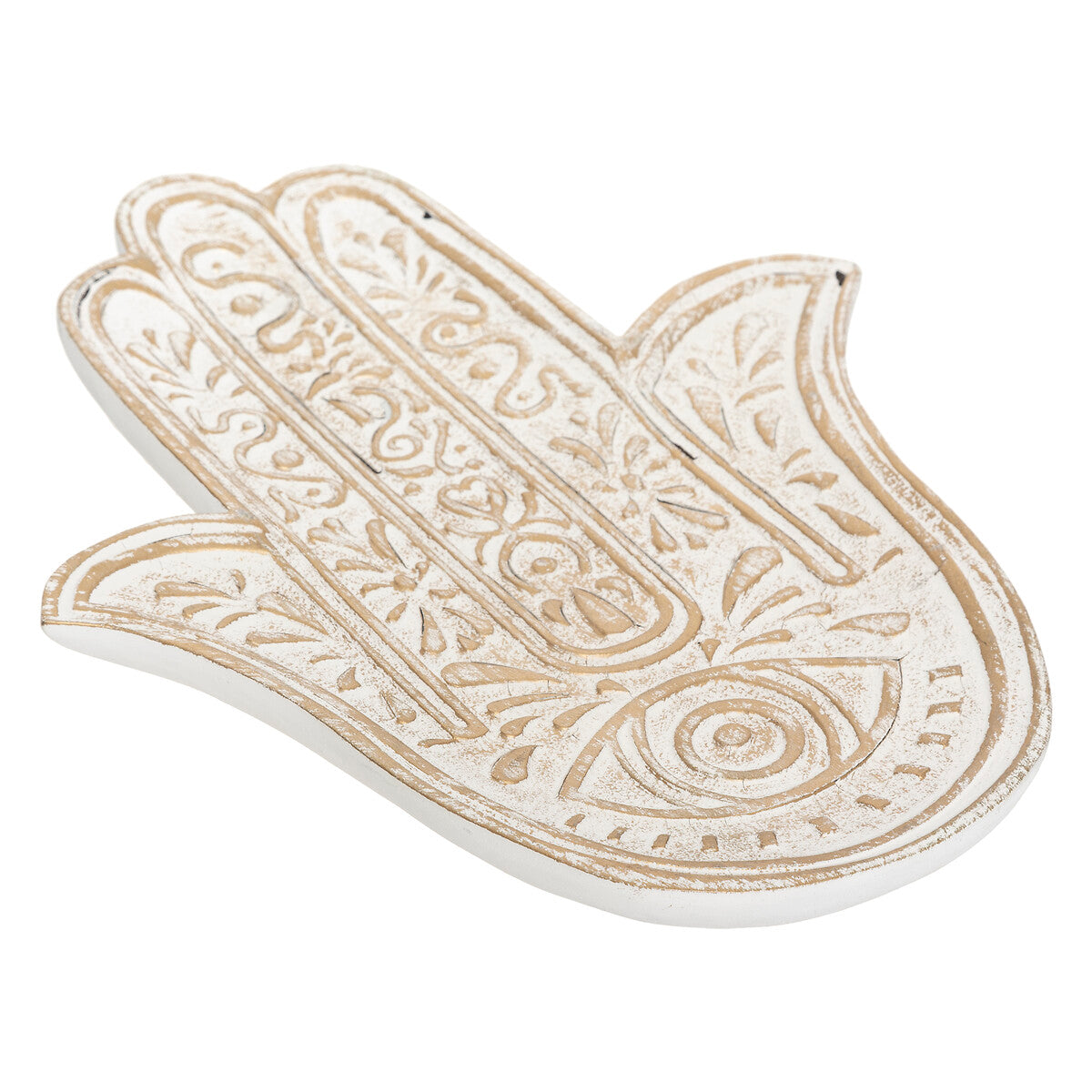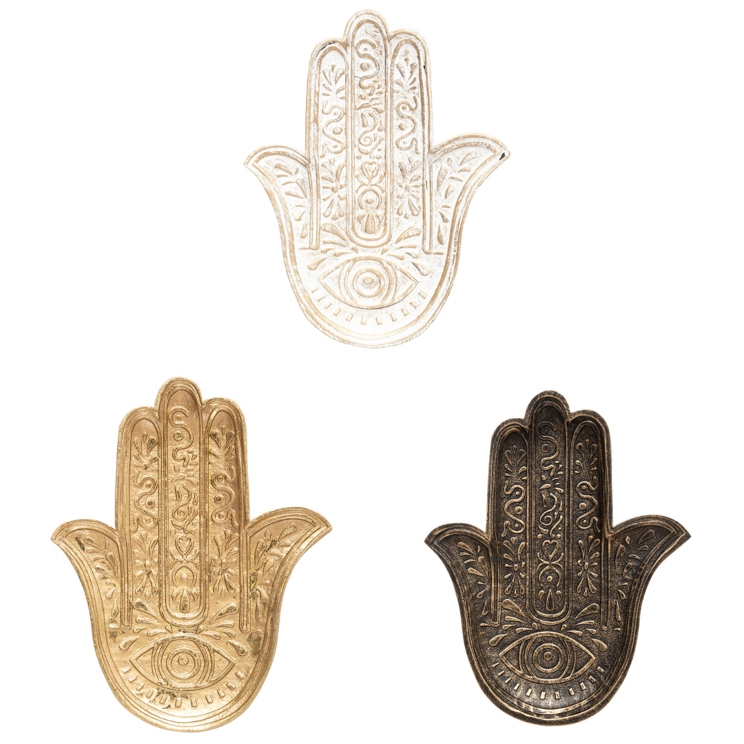 Deze mooie zakorganizer in de vorm van Fatma's hand neemt je mee op reis vanuit je huis. Met zijn reliëfmotieven en handgemaakte look zal dit decoratieve object een exotisch tintje aan je huis geven.