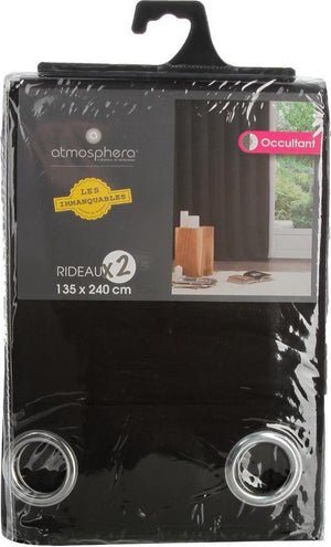 Atmosphera set van 2 Zwarte verduisteringsgordijnen 135x240cm - Kant en klaar met ringen - Gordijn raambekleding - 2 stuks zwart