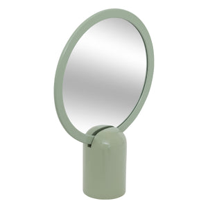 Deze stijlvolle tafelspiegel in zacht groen is een perfecte mix van functionaliteit en design. Compact en decoratief, ideaal voor op een kaptafel, dressoir of nachtkastje. Voeg een speelse en moderne touch toe aan je interieur met deze unieke spiegel!