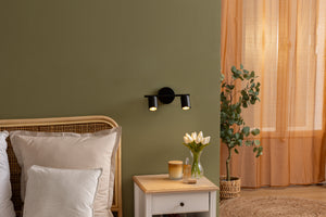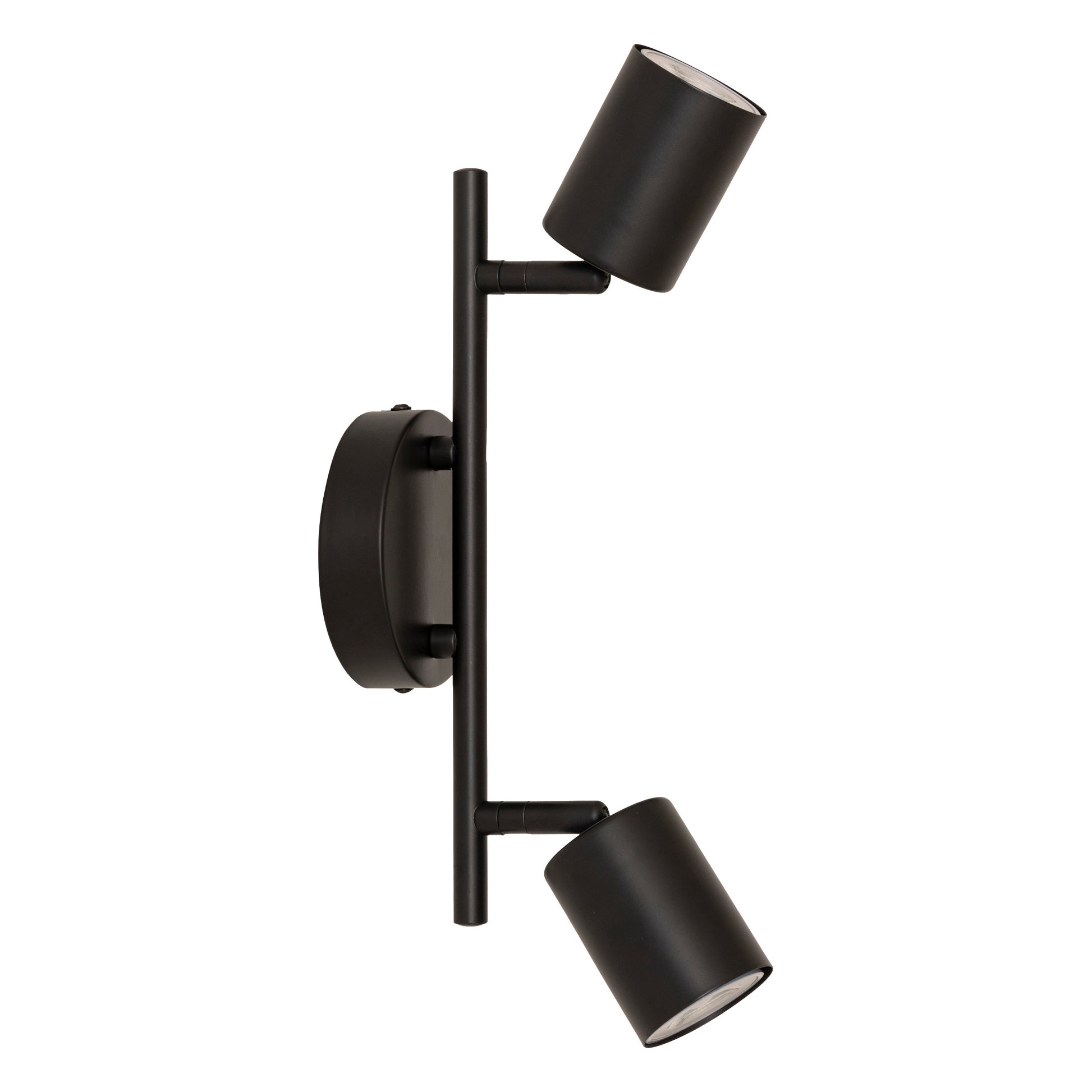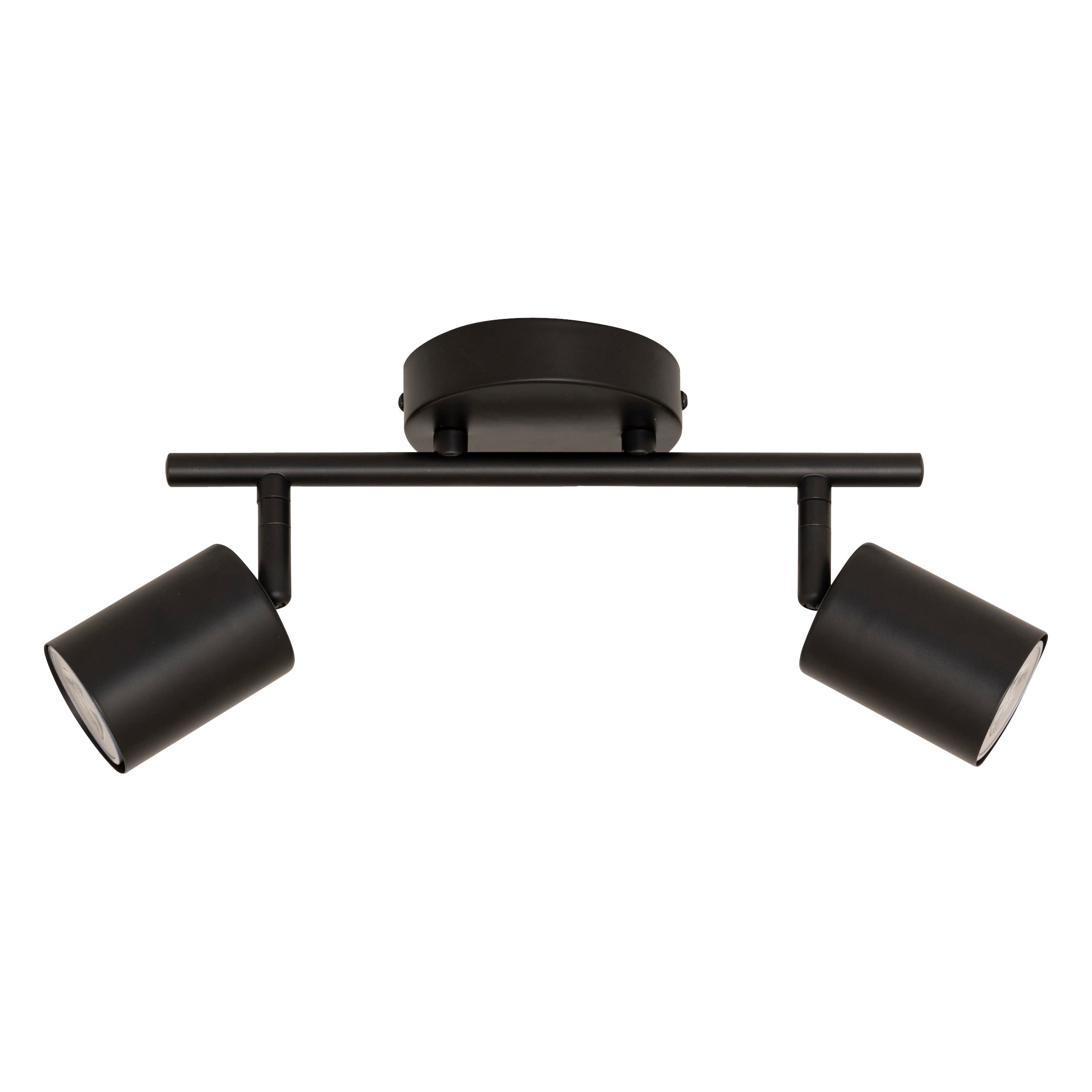 Deze moderne plafondspot met twee verstelbare zwarte spots combineert elegantie met functionaliteit.