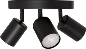 Deze elegante plafondlamp met drie verstelbare spots in mat zwart biedt stijl en flexibiliteit in één.