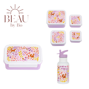 BEAU by Bo A Little Lovely Company Back to school set - Drinkfles RVS/4 Snackdozen/Bentobox - Bloementuin