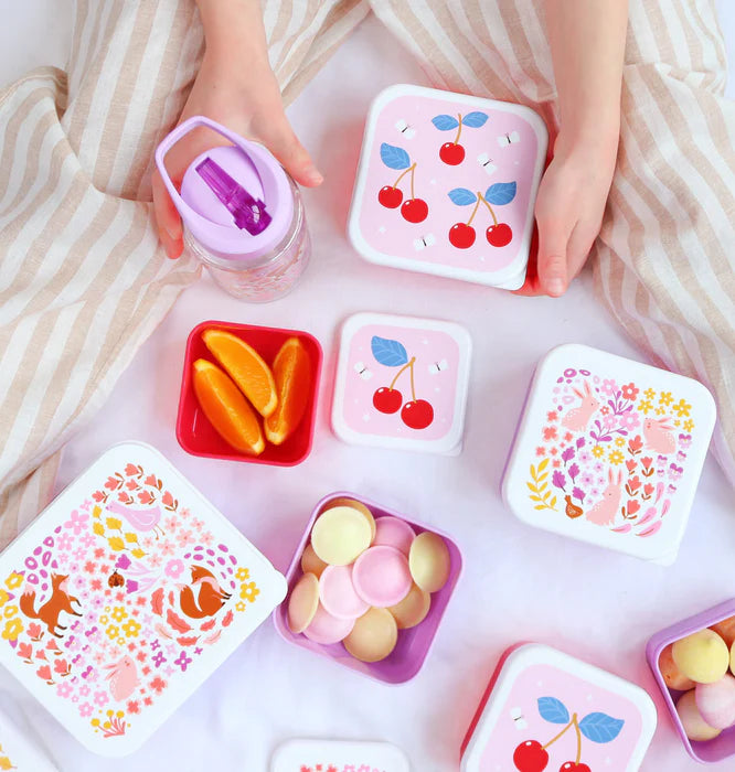 Deze lunch & snack box set is ideaal om mee te nemen naar school of onderweg. De set bestaat uit vier boxen in verschillende maten. Hierdoor zijn ze gemakkelijk in elkaar te stapelen en op te bergen.