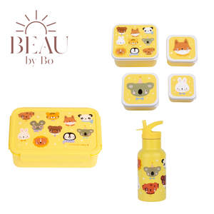 BEAU by Bo A Little Lovely Company Back to school set - Drinkfles RVS/4 Snackdozen/Bentobox - Dierenvriendjes