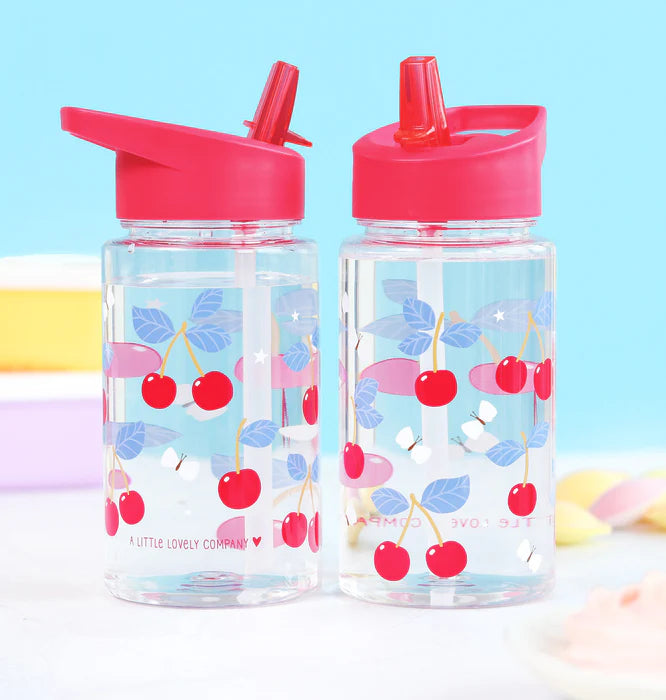 De transparante drinkfles met kersendesign is ideaal om mee te nemen naar school of onderweg. De drinkfles voor kinderen heeft een handige drinktuit en lekt niet. Zo kan je kindje de fles gerust meenemen in zijn of haar tas.