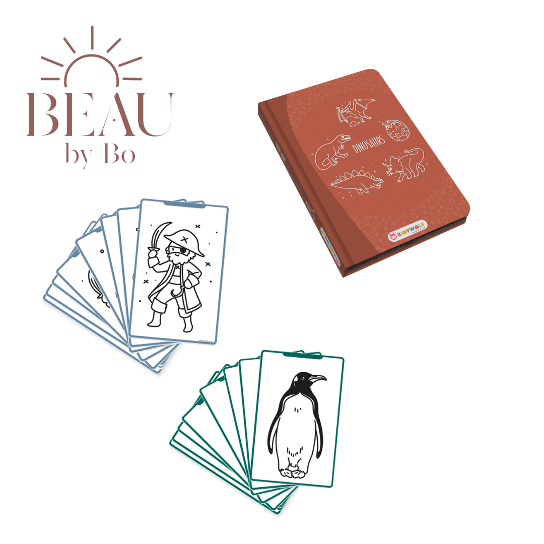 BEAU by Bo Kidywolf Kidydraw Mini Tekenboek met LCD-scherm Dinosaurussen + Refill Dieren & Oceanen en Piraten