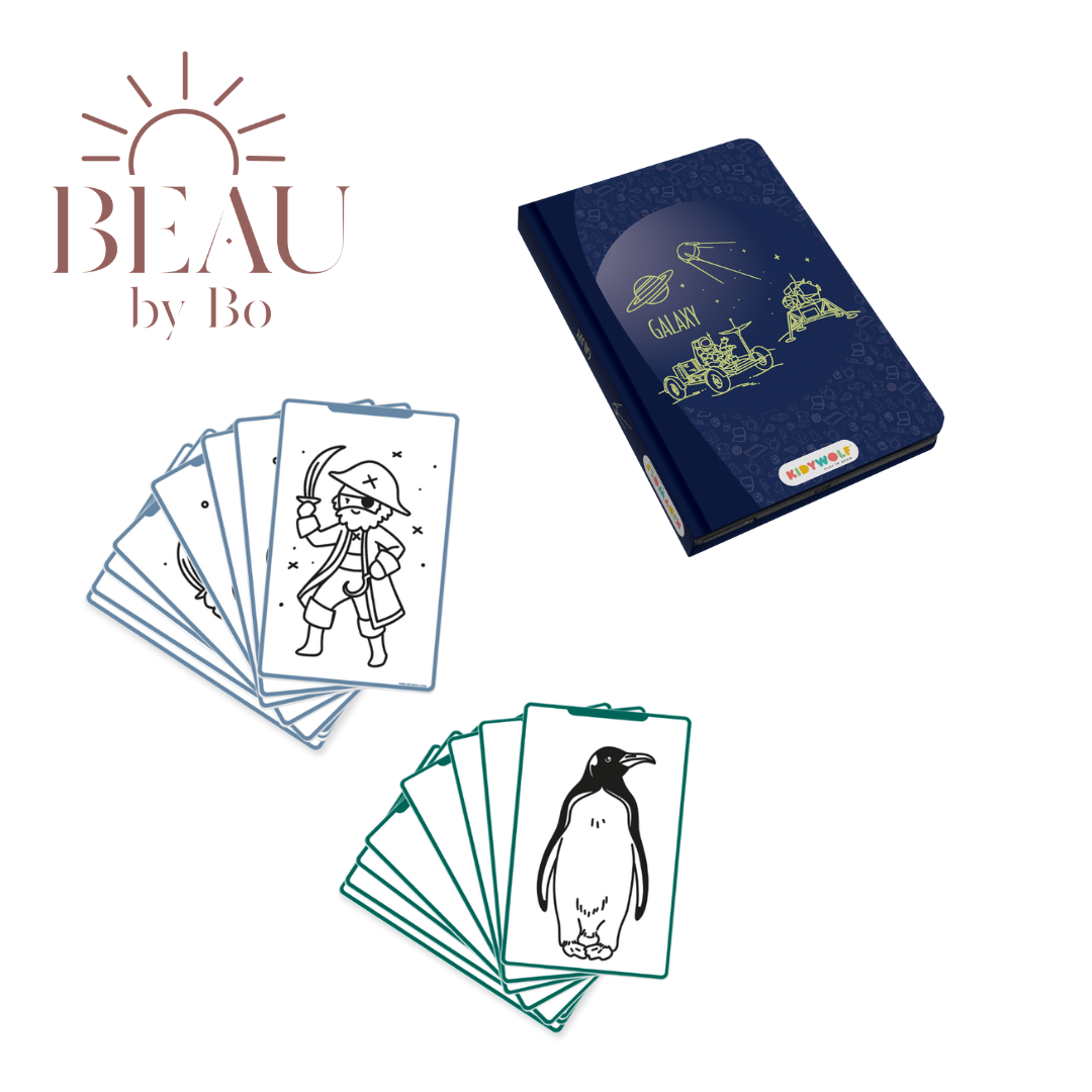 BEAU by Bo Kidywolf Kidydraw Mini Tekenboek met LCD-scherm Galaxy + Refill Dieren & Oceanen en Piraten