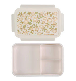 Geräumiger Bentobox mit Saliegroen Blumendruck. Der luftdichte Klick- und Schließen des Deckels und des abnehmbaren Bento -Containers mit zwei Fächern sorgt für ein perfekt organisiertes Mittagessen. Eine ideale Trommel für ein frisches und abwechslungsreiches Mittagessen in der Schule oder unterwegs.