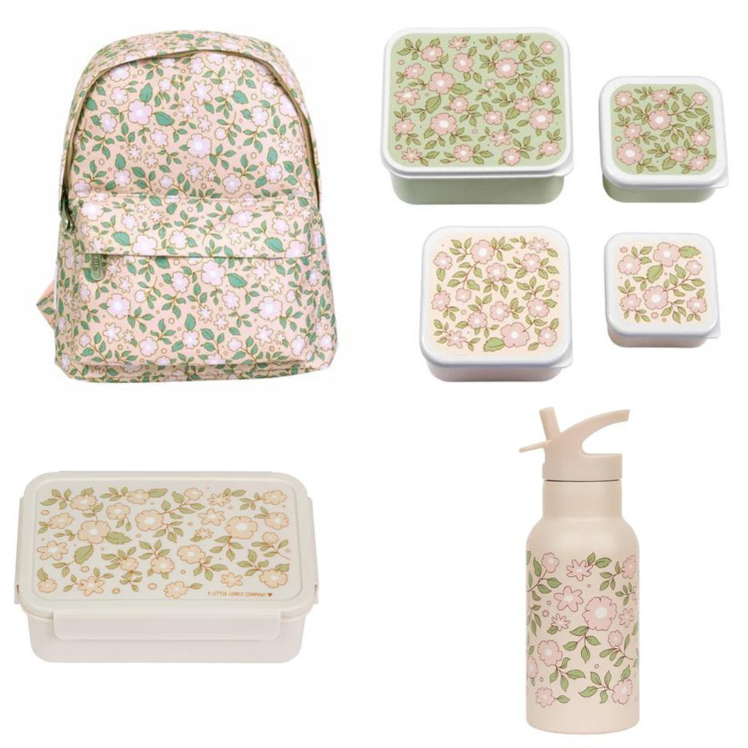 Beau von BO Ein kleiner schöner Unternehmen zurück in die Schule - Rucksack/Trinkflasche Edelstahl/4 Snackboxen/Bentobox - Blüten rosa