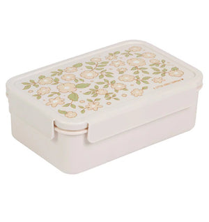 Geräumiger Bentobox mit Saliegroen Blumendruck. Der luftdichte Klick- und Schließen des Deckels und des abnehmbaren Bento -Containers mit zwei Fächern sorgt für ein perfekt organisiertes Mittagessen. Eine ideale Trommel für ein frisches und abwechslungsreiches Mittagessen in der Schule oder unterwegs.