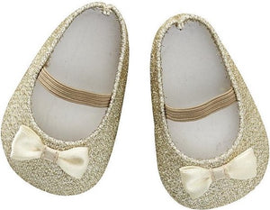 Deze prachtige goudkleurige glitterende schoentjes zijn een echte klassieker en mag dan ook in geen enkele poppenkledingkast ontbreken. De schoentjes zijn bij uitstek geschikt voor poppen met een lengte van 45 cm.