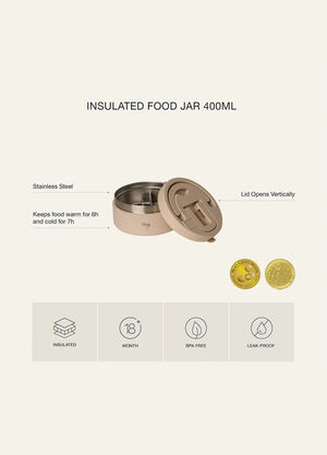 Mahlzeiten können kompliziert sein, aber das Aufbewahren von Mahlzeiten muss nicht sein. Unsere Thermoskanne mit einem Fassungsvermögen von 400 ml erleichtert Ihnen die Zubereitung Ihrer Mahlzeiten. Dank des auslaufsicheren Deckels werden die darin enthaltenen Lebensmittel vakuumversiegelt, sodass die Mahlzeiten sowohl heiß als auch kalt bleiben. Es ist die perfekte Thermoskanne für Erwachsene oder ältere Kinder, um sie zur Arbeit oder in die Schule mitzunehmen und das Essen zu genießen, als wäre es frisch zubereitet.