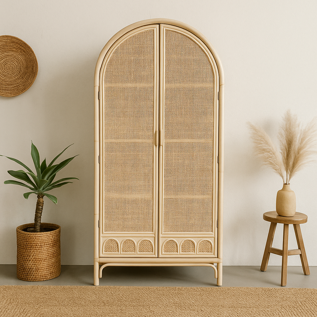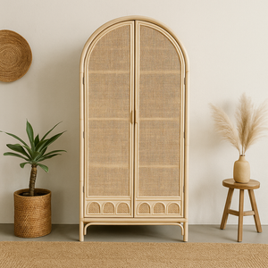 Dieser schöne Rattan Care -Tisch kombiniert Funktionen mit einem warmen, Boho -Look. Mit ihren verspielten Bogendetails und ihrem natürlichen Finish ist sie in jedem Babyzimmer ein echter Augenfänger.