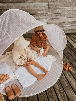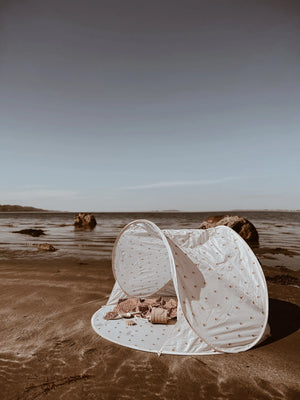 Strandzelt aus 100% Polyester mit Pop-up-Design für Easy Setup.