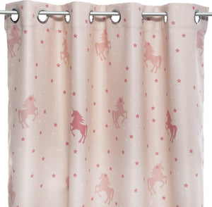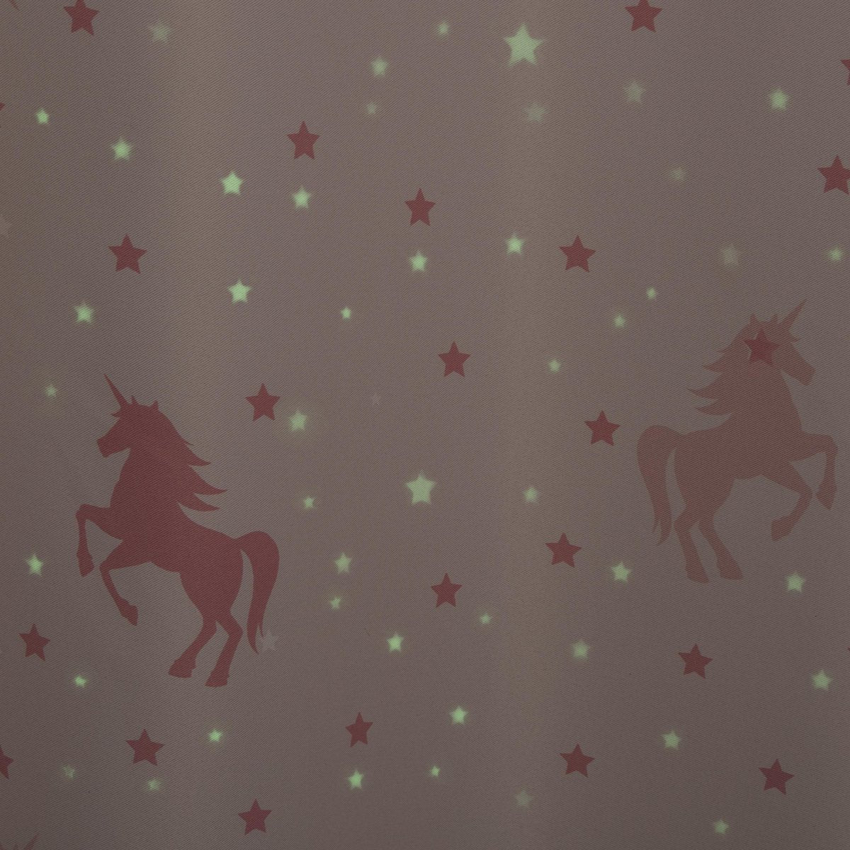 Gordijnen Kinderen 140x250m - raambekleding kind - met haakjes en ringen - Glow in the dark - Roze met eenhoorn