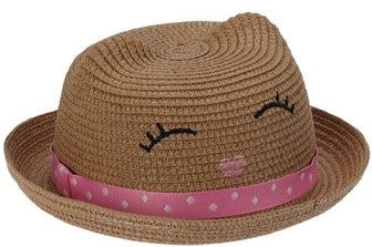 Een leuke jute hoed voorkinderen met een grappig gezicht en oren aan de bovenkant. Assortiment van 2 kleuren, ook verkrijgbaar in een bruine kleur.