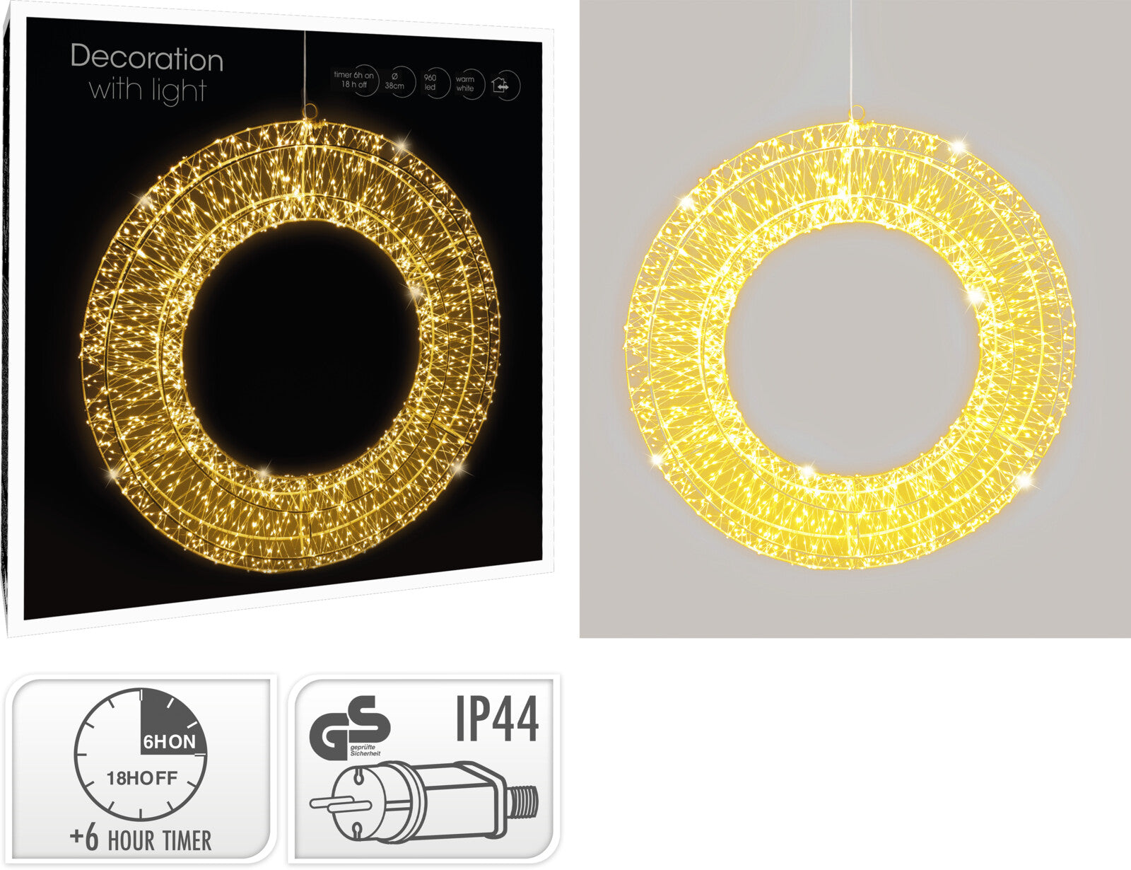 Home & Styling Kerst Verlichte Kroon/Krans - 960LED - Warm wit - Ø38cm
