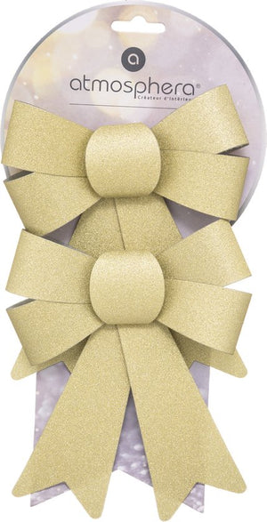Kerst - 6 Glitter strikken - Kerstdecoratie - Kerstboomdecoratie - Goud - 14x18cm - Strikjes