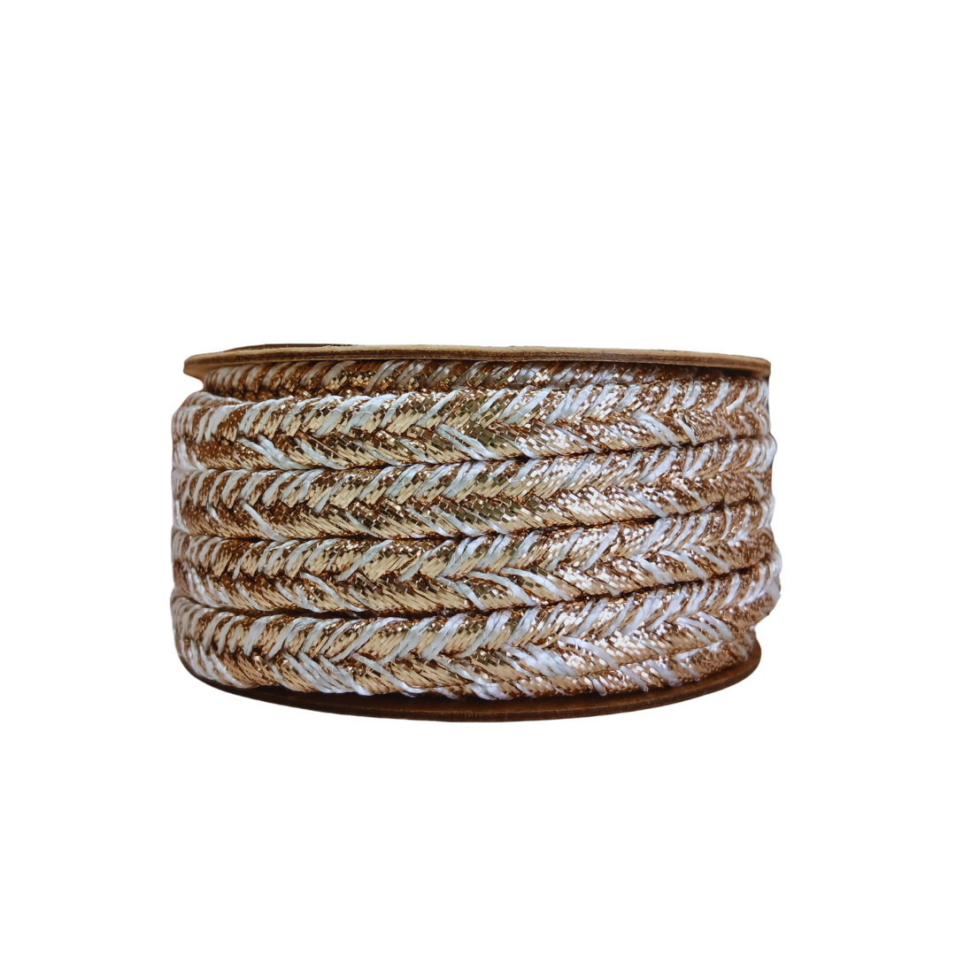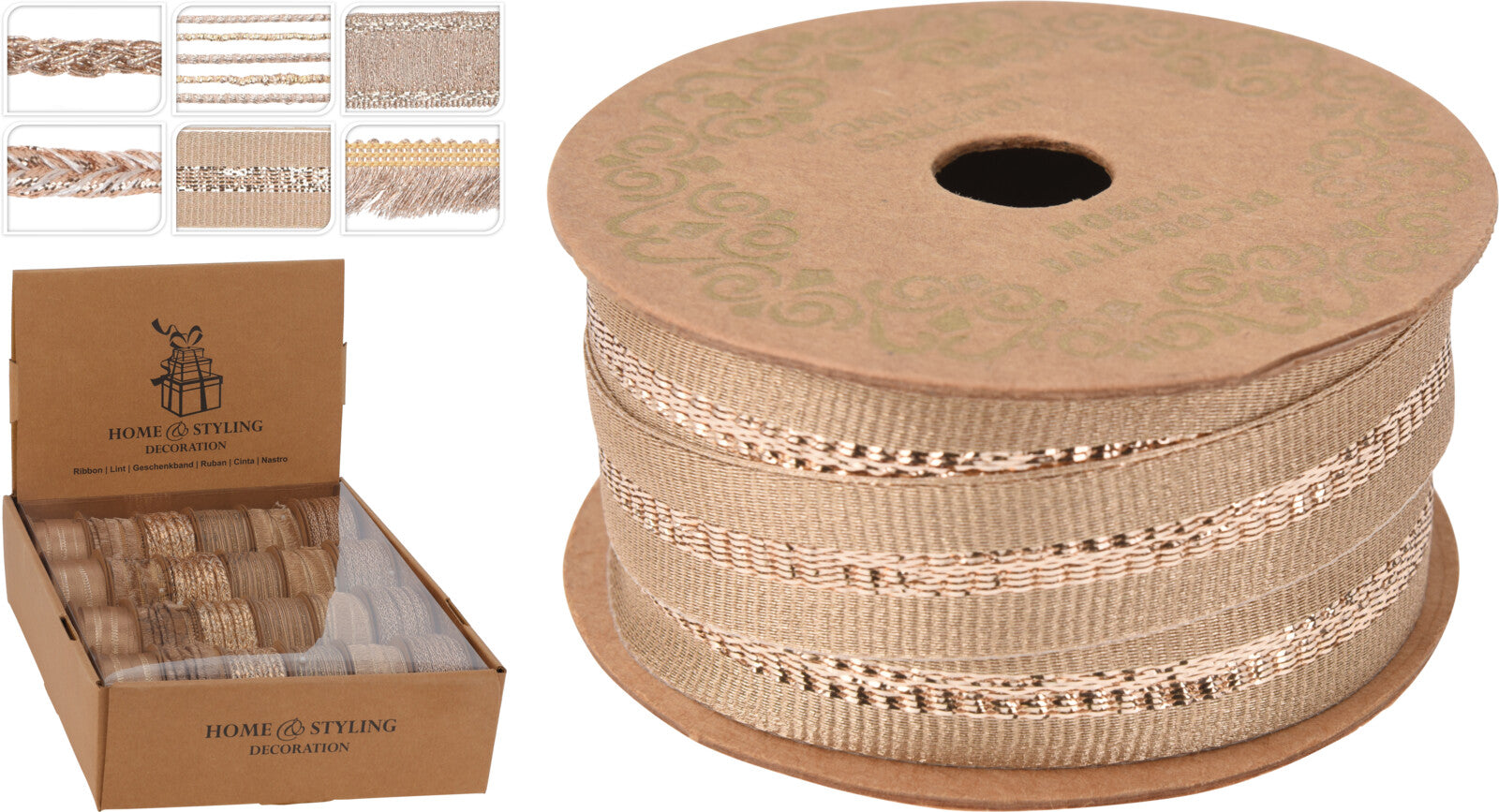 Voeg een vleugje luxe toe aan je cadeauverpakking of kerstdecoratie met dit stijlvolle decoratielint in goudtinten ✨. Het lint heeft een chique afwerking met glanzende details, ideaal om cadeaus extra feestelijk in te pakken, je kerstboom te versieren of creatieve DIY-projecten af te maken.