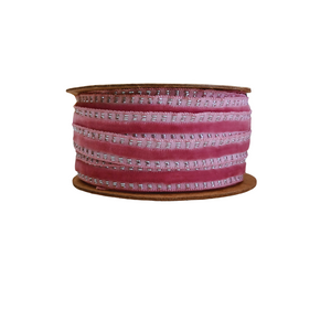 Voeg een vleugje luxe toe aan je cadeauverpakking of kerstdecoratie met dit stijlvolle decoratielint in roze tinten ✨. Het lint heeft een chique afwerking met glanzende details, ideaal om cadeaus extra feestelijk in te pakken, je kerstboom te versieren of creatieve DIY-projecten af te maken.