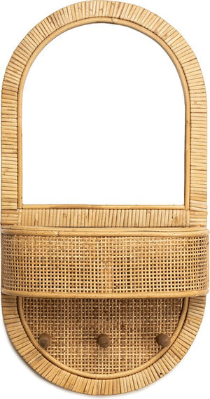 Stijlvol romantisch rotan wandrek van kidsdepot. Een wandrek is praktisch en de eyecatcher in de baby en kinderkamer maar ook in het interieur. Het rotan wandrek past erg leuk in verschillende interieur stijlen maar is uitermate geschikt om een bohemian sfeer te creëren. Hang het wandrek boven de commode voor de luiers, hydrofiele doeken en zalfjes. Doordat dit wandrek een spiegel heeft is dit wandrek ook heel geschikt voor de tienerkamer. Zo creëer je sfeer en heb je alle spullen binnen handbereik. Mooi in combinatie met andere rotan of bamboe accessoires en natuurlijke tinten. 40x40x10 cm