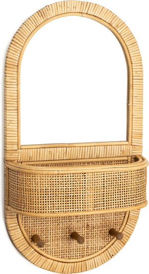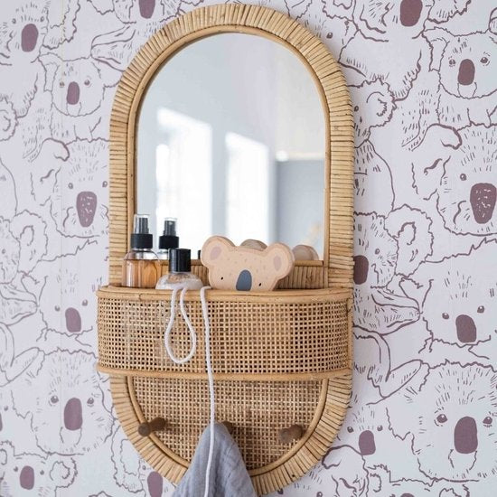 KidsDepot rotan wandrek met spiegel - Kapstokken - rotan - 32x10x60cm