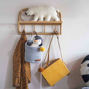 Van het kleed op de vloer, het plaid over het bed en de lamp aan het plafond, de opbergers onder het bureau, het boxkleed in de box, het wandrek boven de speeltafel tot aan de dierenkop aan de muur: KidsDepot heeft het allemaal!