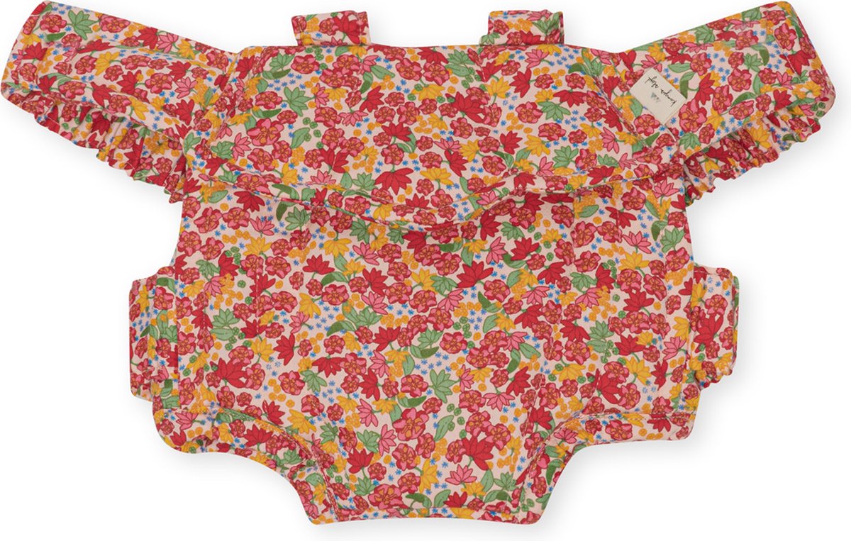 Poppendrager gemaakt van 100 procent bedrukt biologisch katoen. Ontworpen met elastische bandjes en schulpvormige uiteinden. De drager is gemakkelijk in gebruik, comfortabel en licht van gewicht.