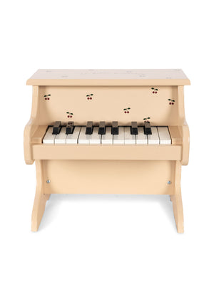 Hoogglanzende miniatuurpiano met 18 toetsen. Bij de piano wordt een kleine houten houder voor notities meegeleverd.