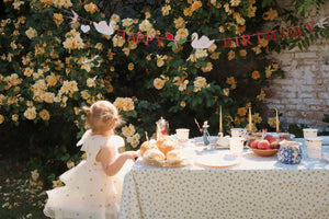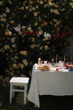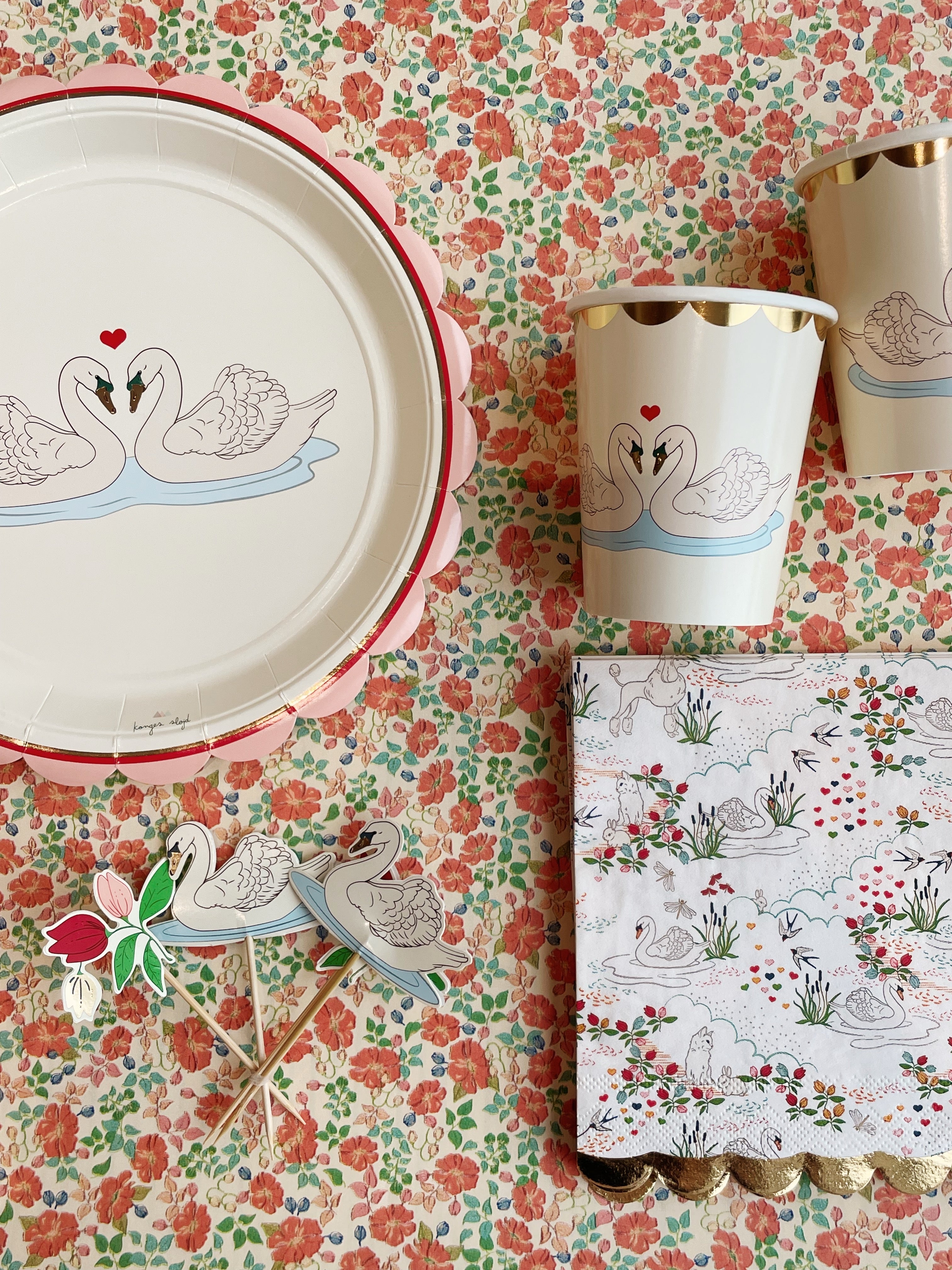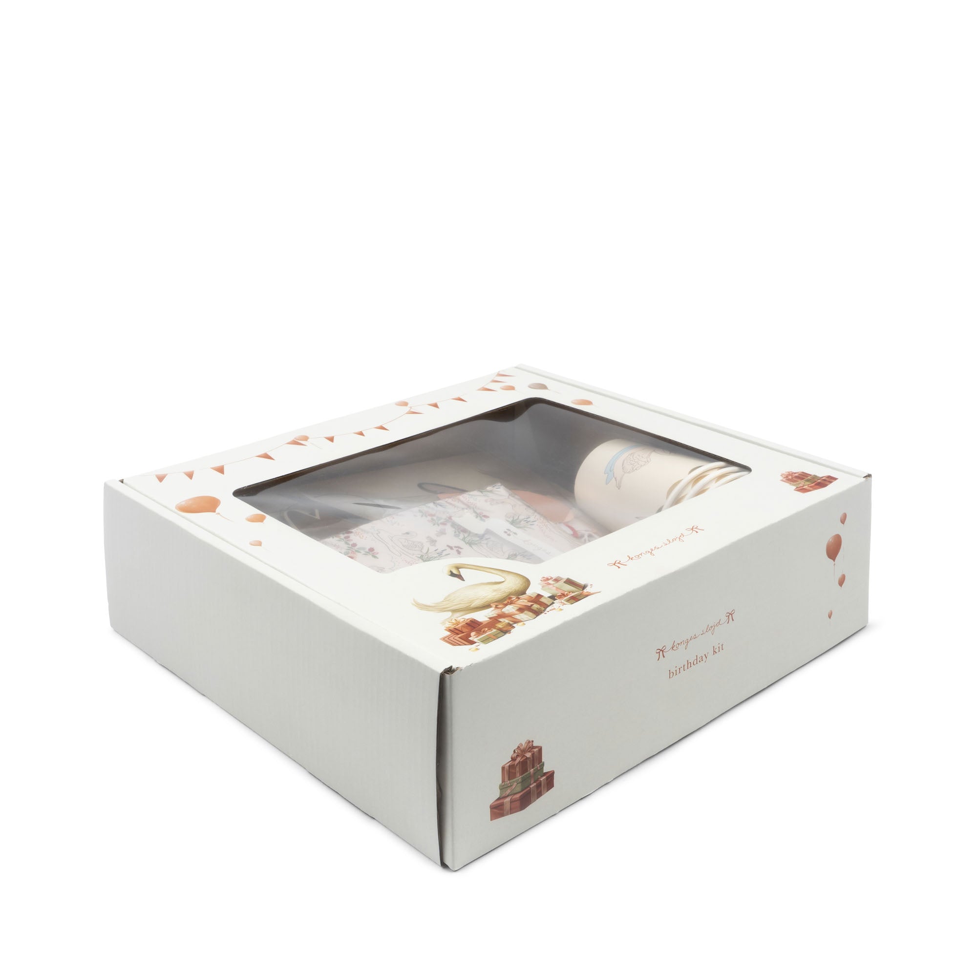 Konges Sløjd Happy Birthday kit - Borden, bekers, ballon, slinger, servetten, taarttopper, pompon - Swan