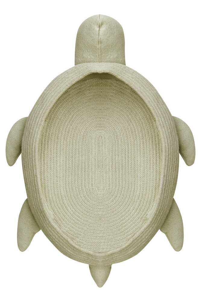De Mama Turtle mand heeft de vorm van een zeeschildpad en is handgemaakt met gevlochten koorden gemaakt van vezels van gerecyclede PET-flessen gemengd met onze katoenkleuren. Het onderste deel van de mand, met het lichaam van de schildpad, is gemaakt van olijfgroen koord, met gezwollen voeten en een gevormde kop van canvas van olijfkatoen.