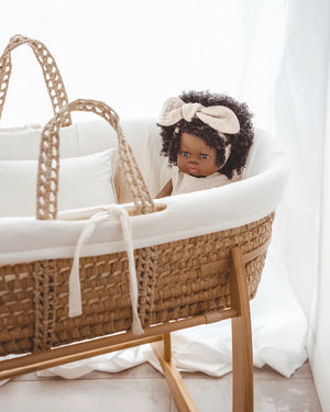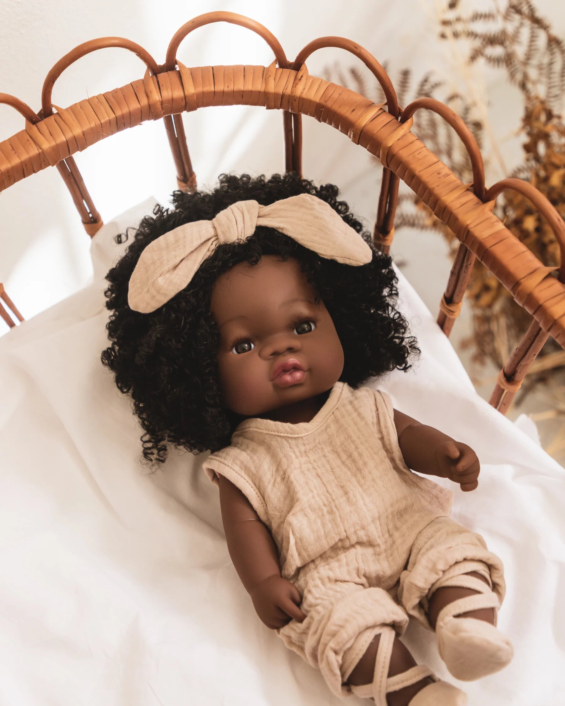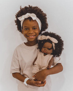 Elke Loreta bevat een set ondergoed, een hoofdband, een jumpsuit en een paar schoenen, handgemaakt in Portugal van 100% katoenen gaasstof. De extra stevige verpakking is gemaakt van gerecycled karton.