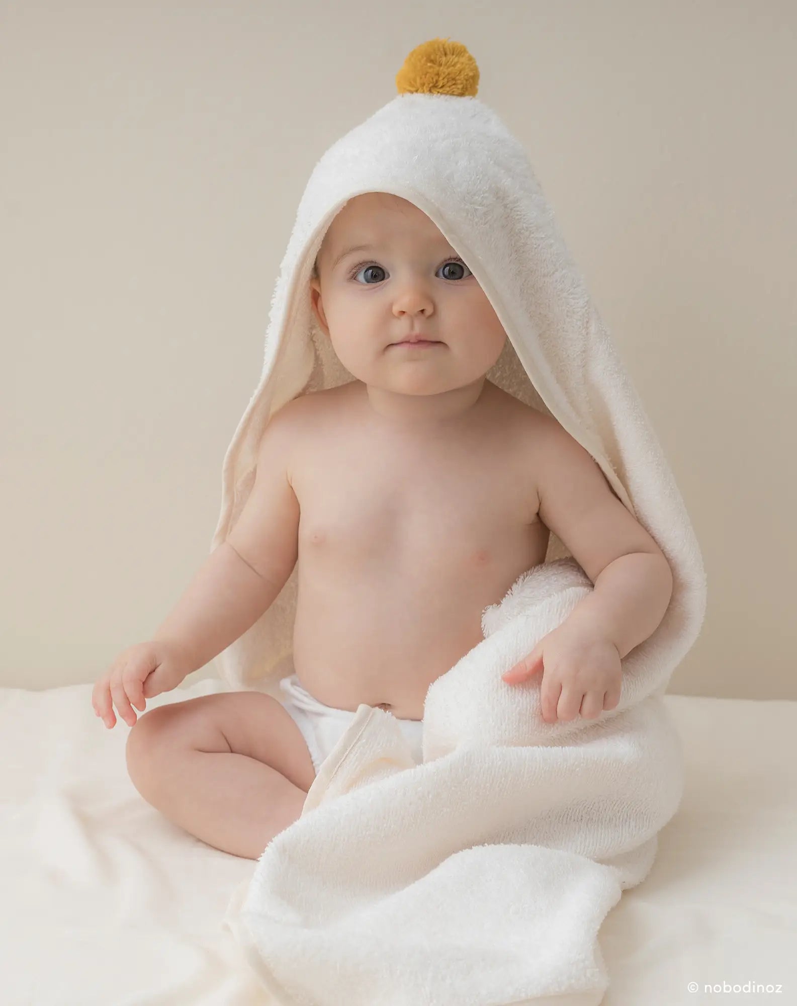 Verwen je baby na het badderen met deze badcape van biologisch katoen.