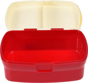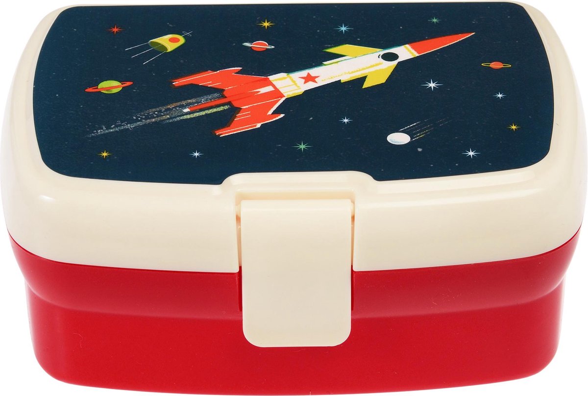 Eine Lunchbox mit abnehmbarem Tablett und Scharnierdeckel mit unserem Haiabdruck.
