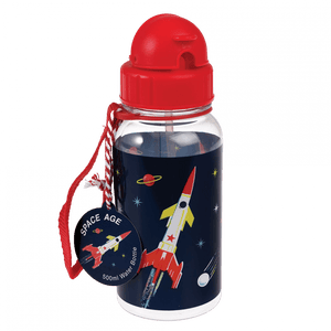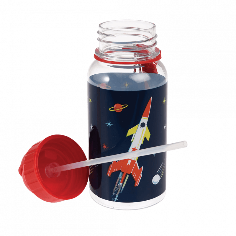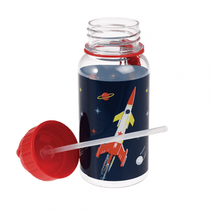 Wasserflasche im Hai -Design für Kinder mit integriertem Stroh und Nylongürtel.