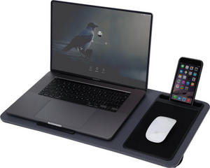 Werk of studeer ontspannen met deze stijlvolle laptopstand! Dankzij het ergonomische ontwerp, het zachte kussen en de geïntegreerde muismat werk je comfortabel op de bank, in bed of onderweg.