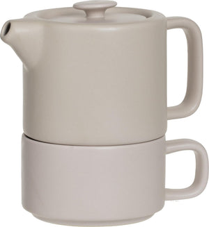 3 IN 1 THEEPOT + KOPJE + ONDERZETTER KERAMIEK NUDE ROSE.